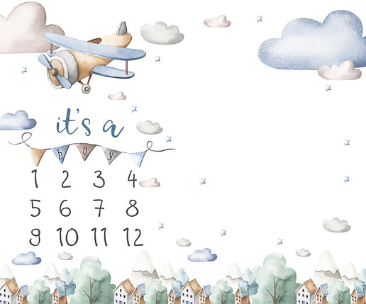 Фотопеленка для первых фотосессий малыша с 1до12 месяцев /Фотофон "Самолетик" 120х100см