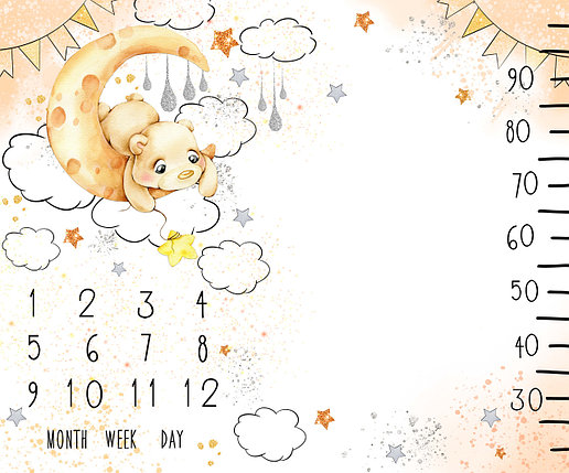 Фотопеленка для первых фотосессий малыша с 1 до 12 месяцев / Фотофон "Мишка на месяце" 120х100см