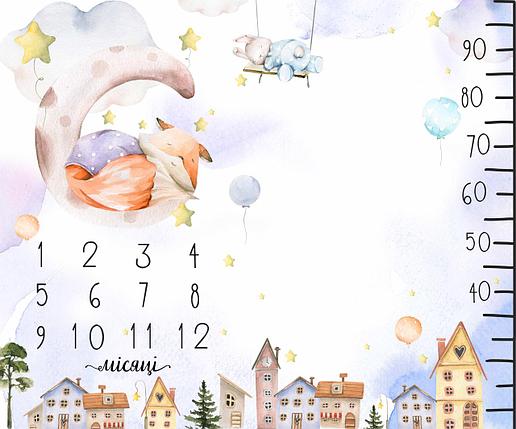 Фотопеленка для первых фотосессий малыша с 1 до 12 месяцев / Фотофон "Лисичка на луне" 120х100см